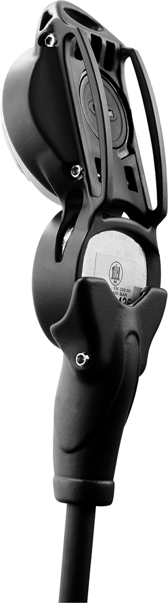 Angled console fits naturally in the hand and positions both the pressure gauge and computer for optimal viewing.