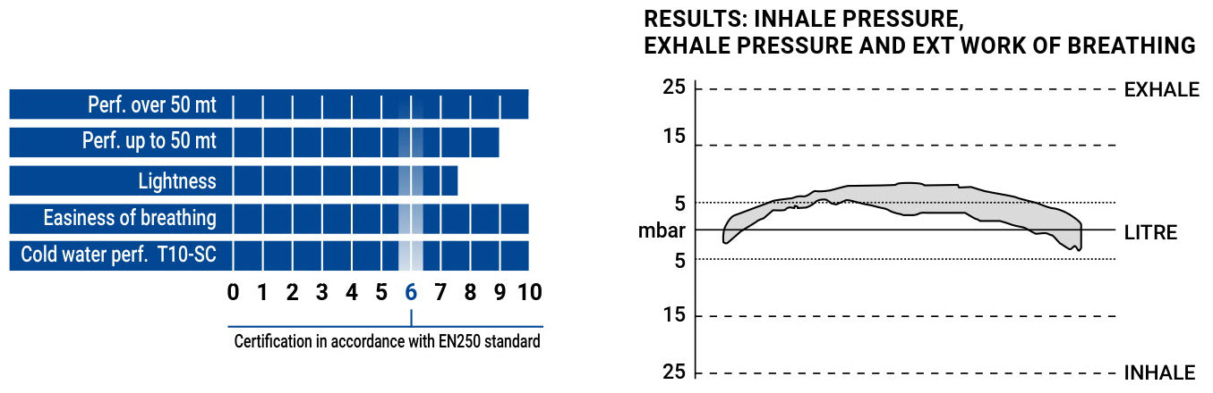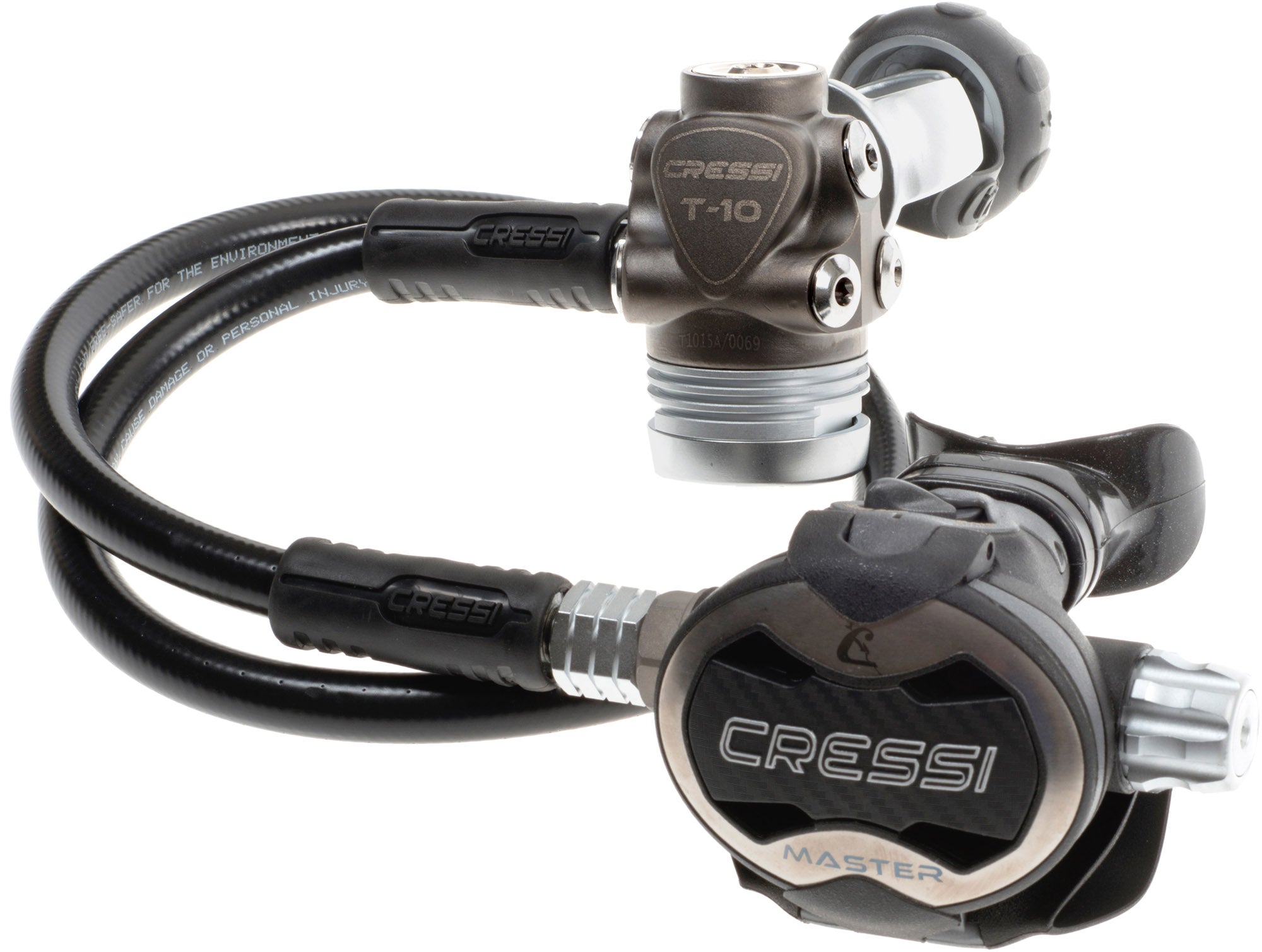 Performance, ergonomic reliability, and ease of maintenance make this regulator a product for true diving professionals. Instructors, guides, dive operators, and researchers will find the answer they need in the Master Ellipse. The first stage stands out from the range of Cressi balanced diaphragm regulators because the mechanism is arranged on an axis perpendicular to the axis of air entry, creating a "T" shape. The advantages of this particular design include better arrangement of the hoses and less space occupied (especially in SC versions for cold water). What's more, this makes it remarkably easy to inspect and access the mechanism to improve maintenance and calibration operations, it uses a larger, high-efficiency conical filter, and the valves are arranged more easily on the tank. The metal body is protected on the surface by a special treatment called PVD (Physical Vapor Deposition), which compared to traditional chrome coatings is exceptionally resilient to the mechanical and chemical wear caused by dives. The DIN fitting has a generous metallic handwheel to make it easier to use in extreme conditions. The Master Ellipse second stage has installed the exceptional and proven Cressi balanced valve to ensure minimum inhalation effort. This valve is paired with a body with metallic parts treated in PVD. What's more, the knob for adjusting inhalation effort is made of a metallic material to guarantee reliability and resistance to blows and scratches.